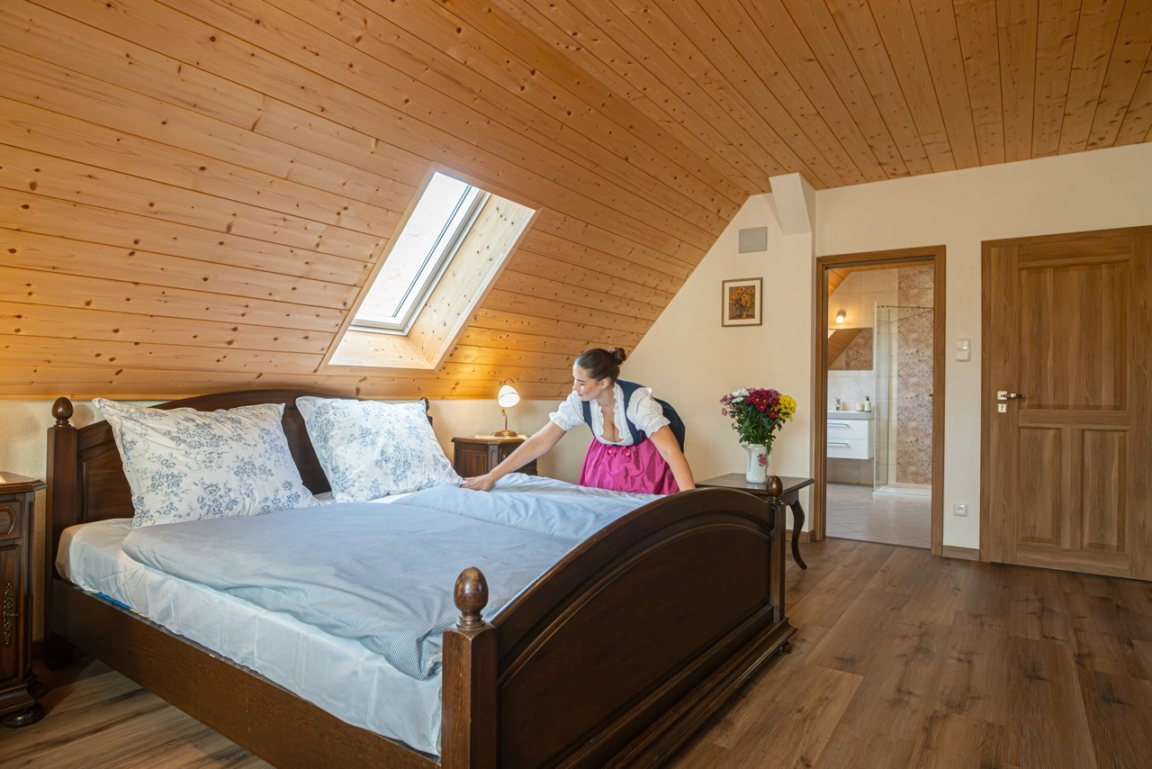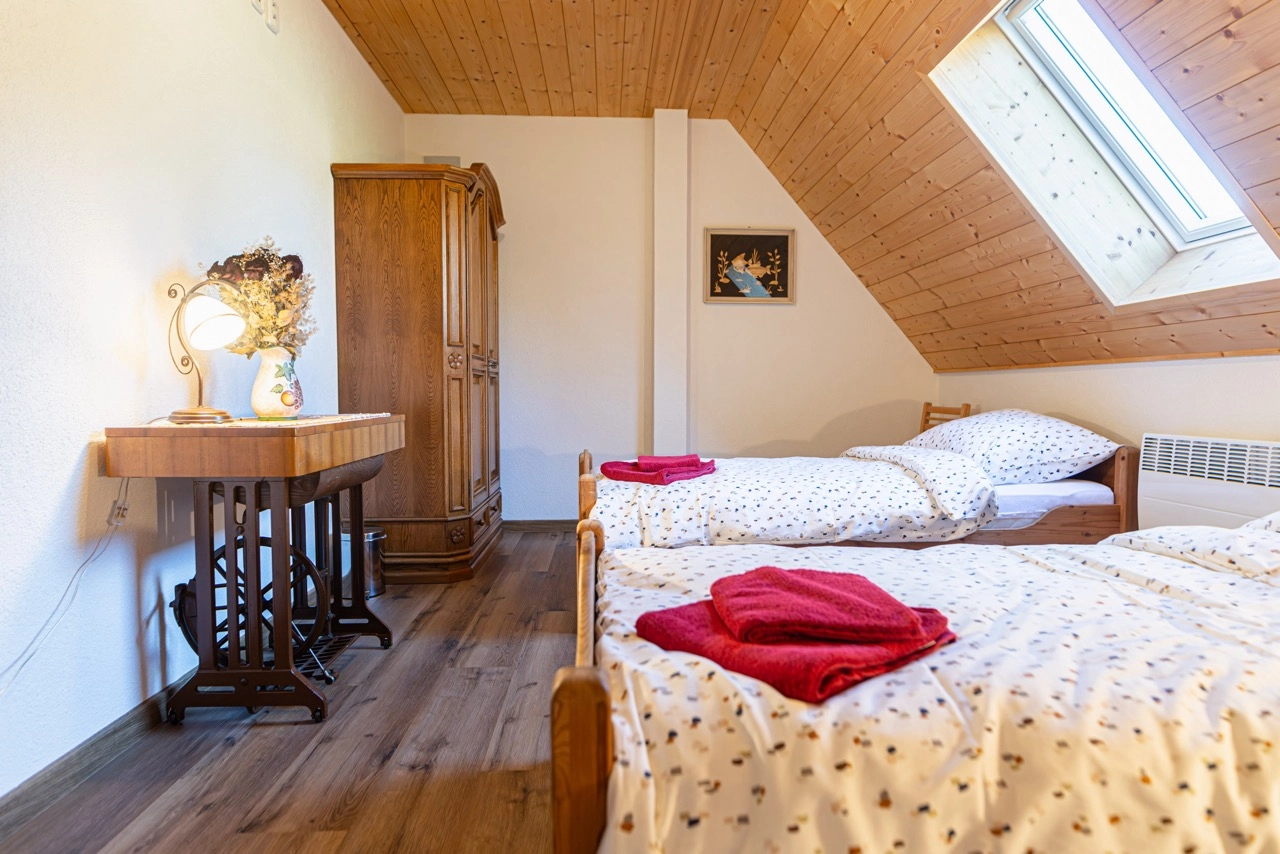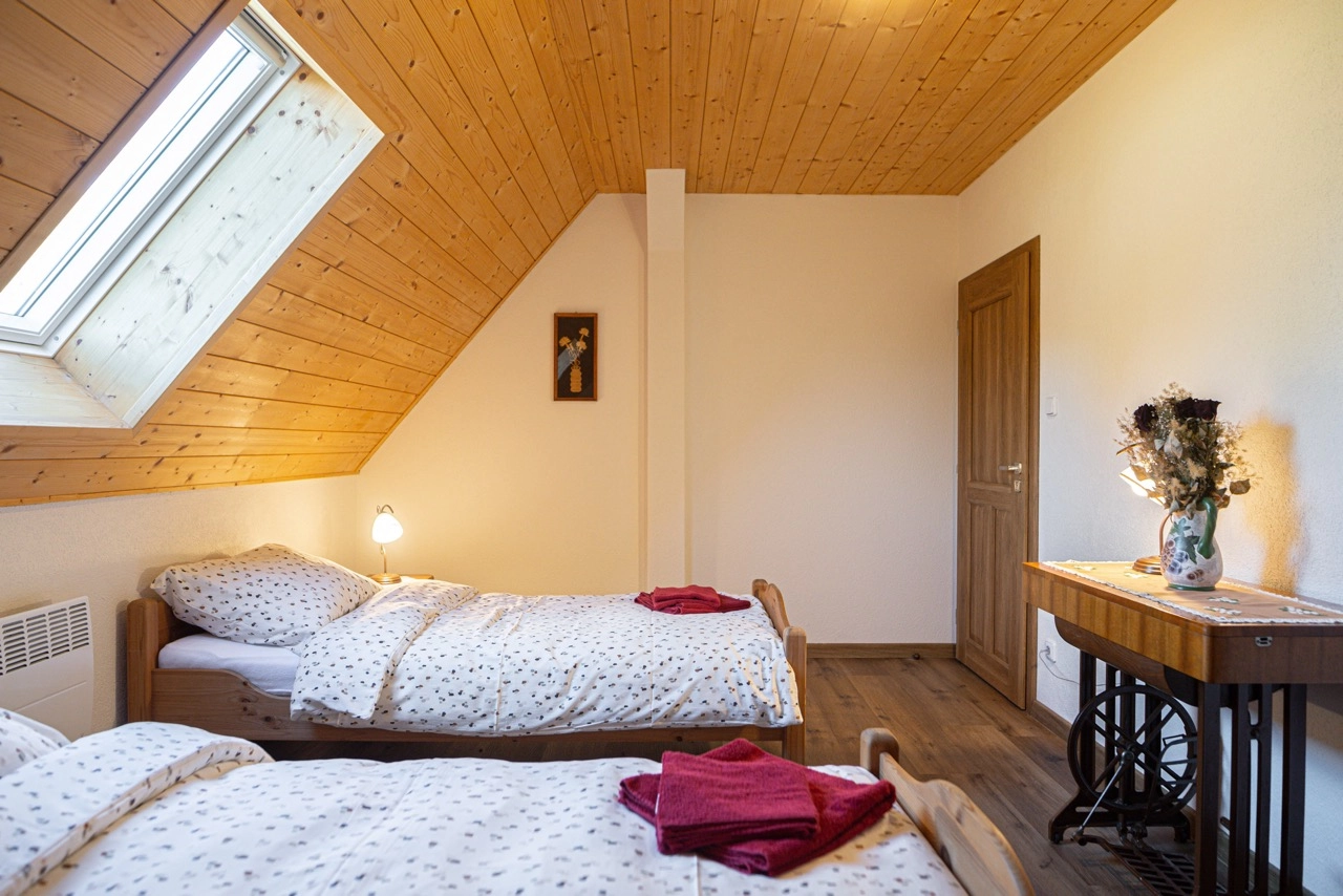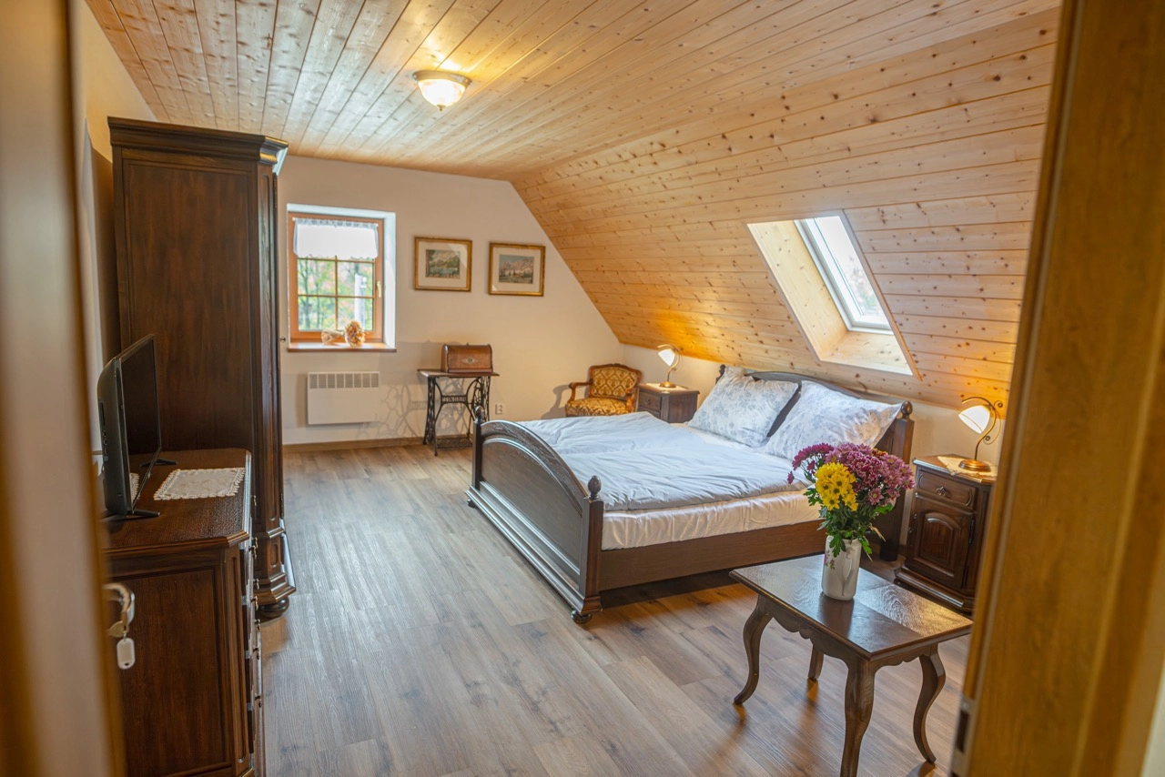 Nabízíme ubytování ve Slezské Hartě, kde můžete využít jednoho z našich tří dvoulůžkových pokojů, vybavených vlastní koupelnou a možností přidání přistýlky pro větší pohodlí. Kromě toho jsou k dispozici další tři dvoulůžkové pokoje, bez vlastní koupelny, ale hosté mohou využívat společnou koupelnu umístěnou v přízemí. Všechny naše pokoje jsou navrženy tak, aby poskytovaly dostatek prostoru a pohodlí, doplněné o příjemnou atmosféru a kvalitní postele pro zajištění nerušeného spánku. Dopřejte si odpočinek, který si zasloužíte.