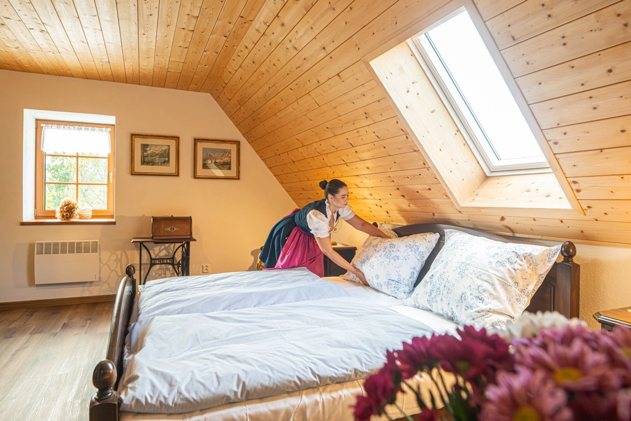 Součástí je také útulná společenská místnost s barem a krbem, která je jako stvořená pro večery plné povídání a sdílení zážitků s rodinou nebo přáteli. Pokud hledáte opravdový klid a odpočinek, máme pro vás připravenou soukromou wellness zónu s vířivkou a saunou. Chalupa Sonnenhaus je perfektním místem pro ty, kteří hledají útěk od ruchu města a touží po harmonii s přírodou.