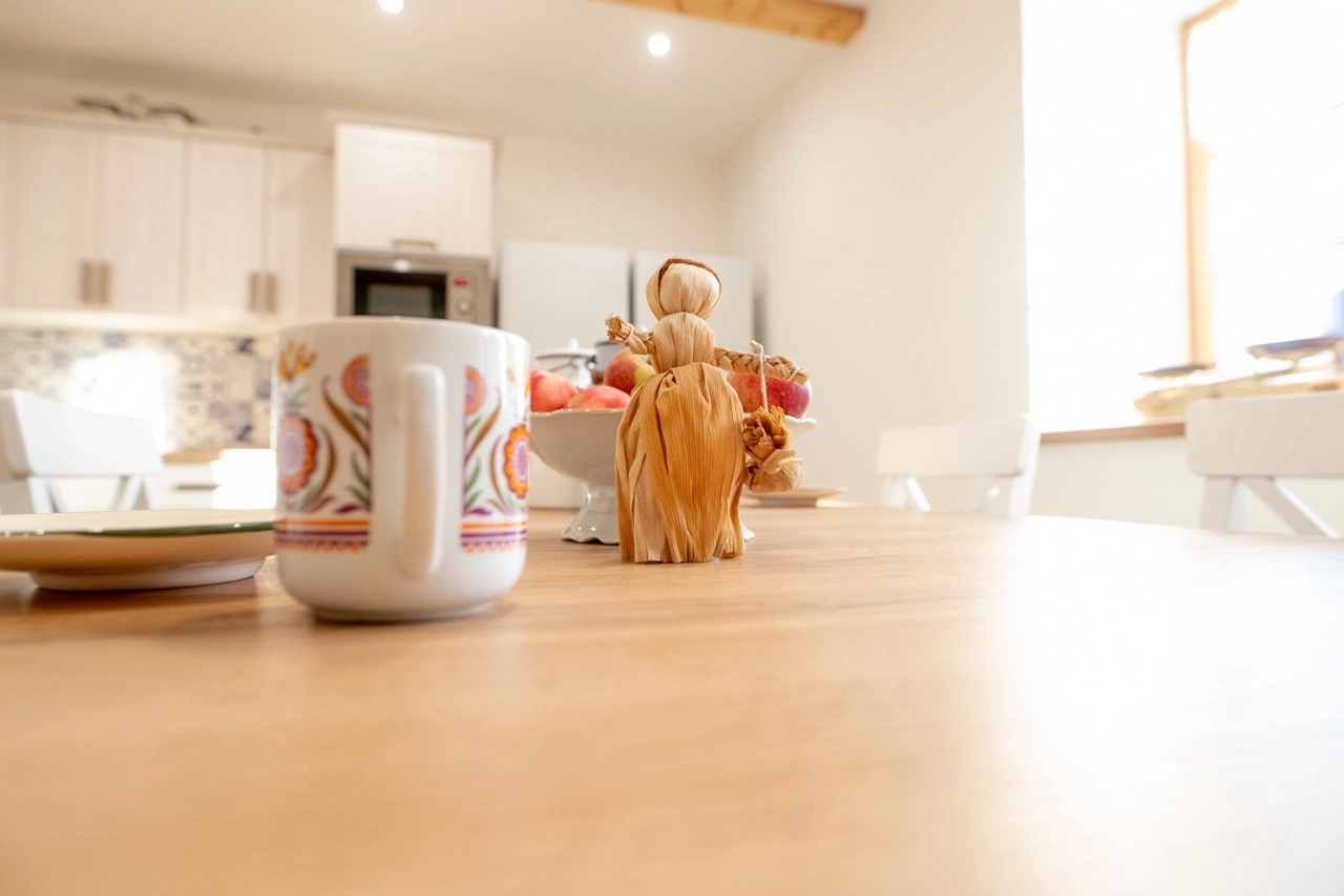 Prostorná a moderně zařízená společenská kuchyň nabízí veškeré potřebné vybavení pro pohodlné vaření a přípravu pokrmů. K dispozici vám je velká lednice, myčka nádobí, varná deska, trouba, mikrovlnná trouba, varné konvice. Místo jako stvořené pro kulinářské zážitky a setkávání s nejbližšími.