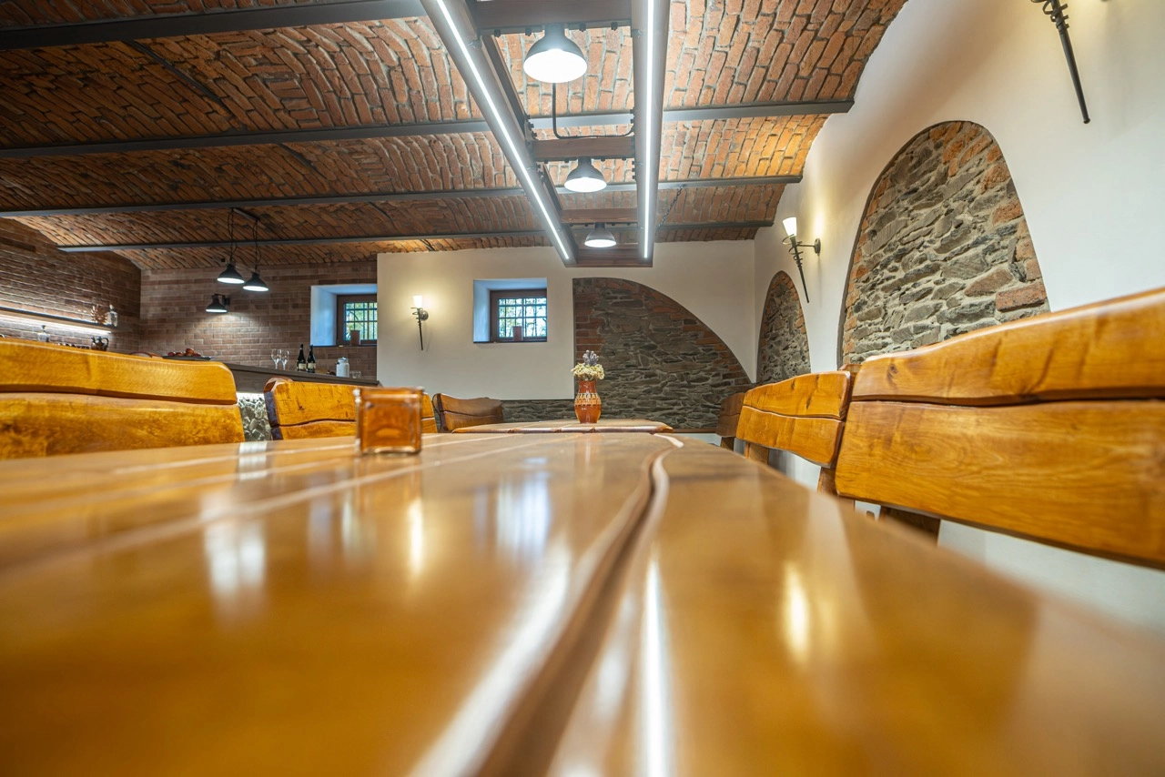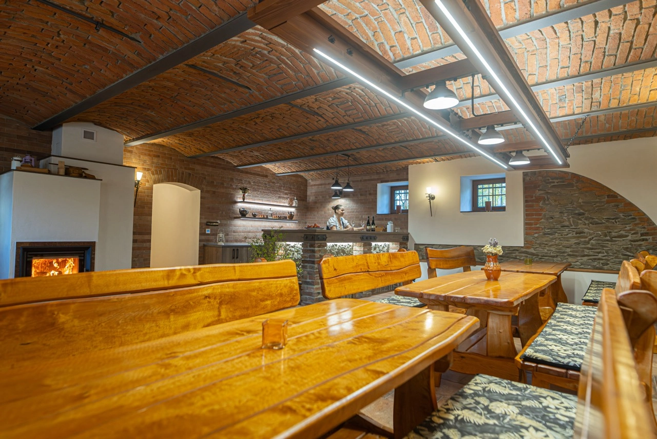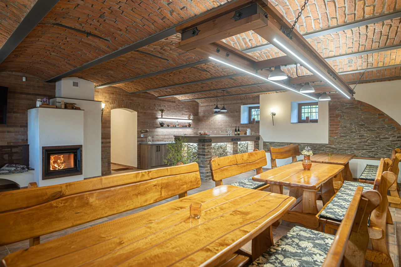 Společenská místnost je středobodem pro trávení společných chvil s rodinou a přáteli. V rohu se nachází rozsáhlý barový stůl pro přípravu nejrůznějších druhů nápojů. Atmosféru navíc umocňuje praskání dřeva v krbových kamnech, které dodává prostoru tu pravou teplou a útulnou atmosféru.